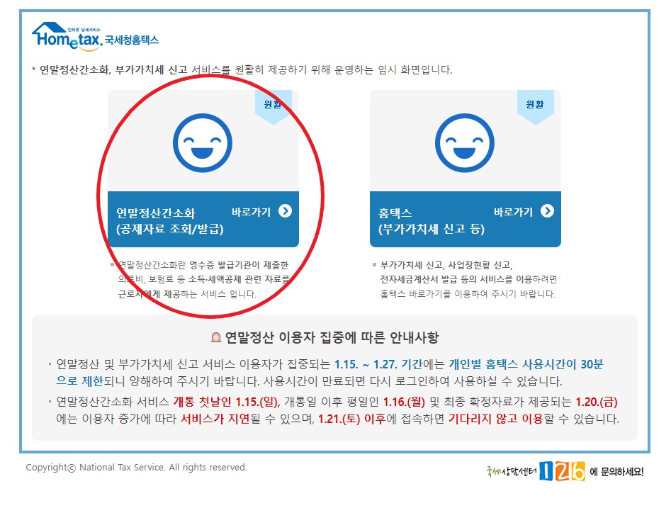 연말정산 간소화 서비스는 매일 6시부터 24시까지 이용 가능하니, 시간을 미리 체크해두는 것도 좋을 것이다.