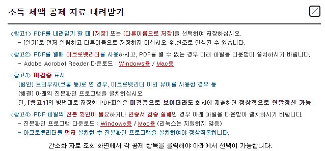 그리고 PDF를 열 때 아크로벳리더 프로그램을 사용하고 필요 시, 홈택스 창에서 다운로드를 할 수 있다.